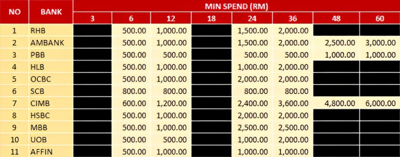 APlease refer the table below for the minimum spend requirement in order to be eligible for Installment Plan: